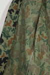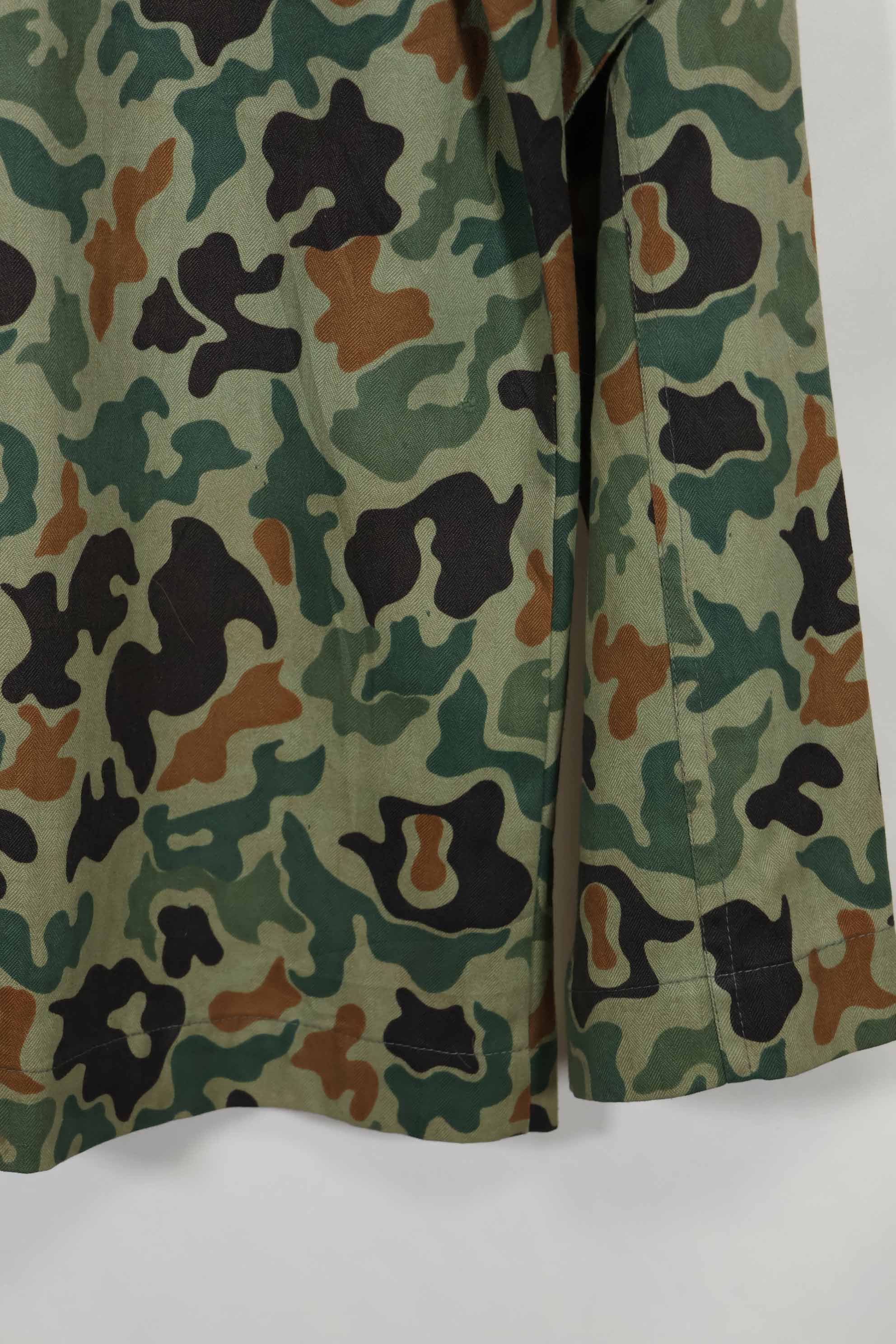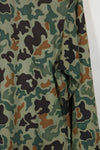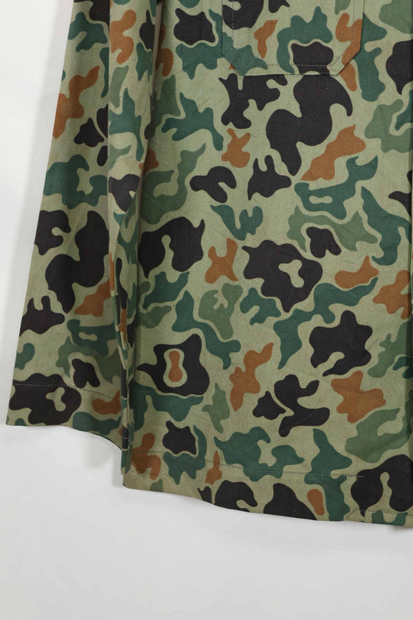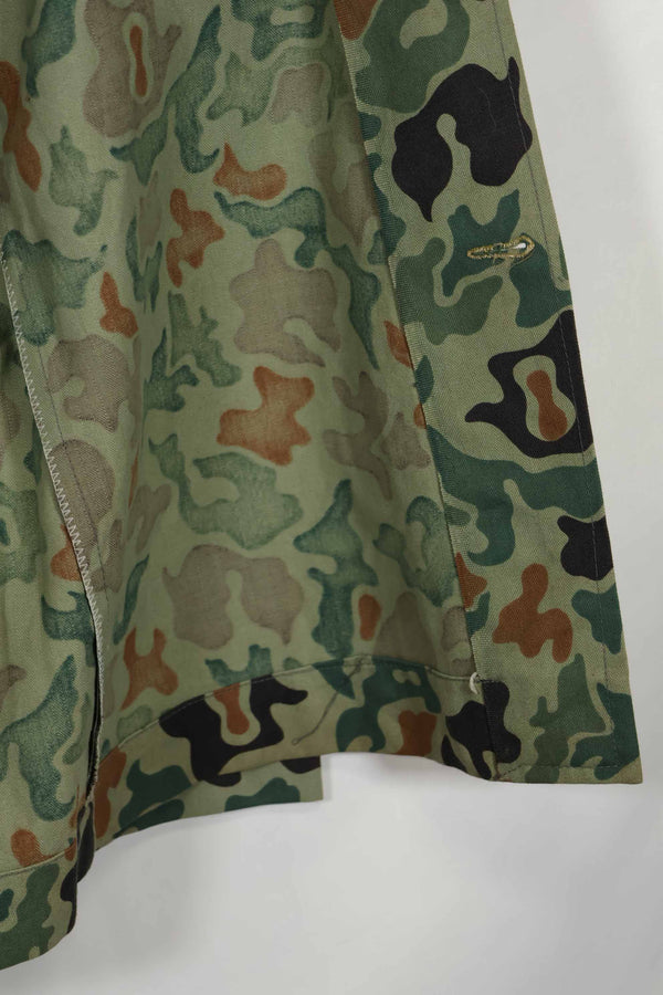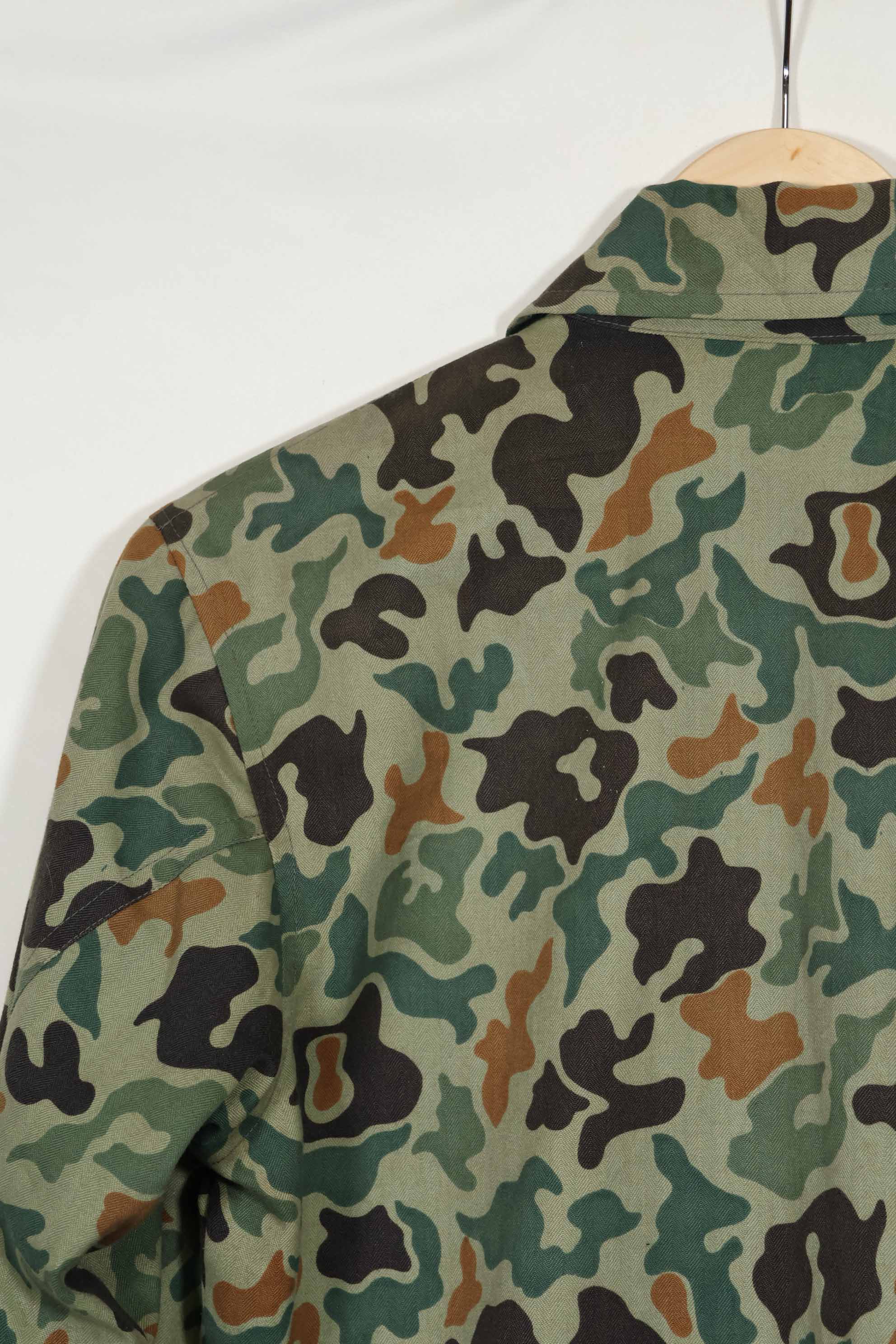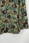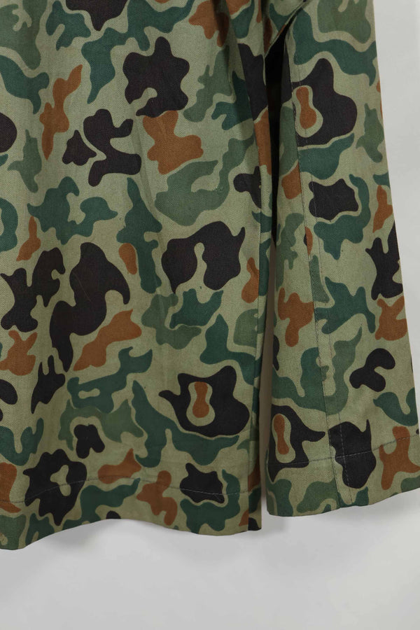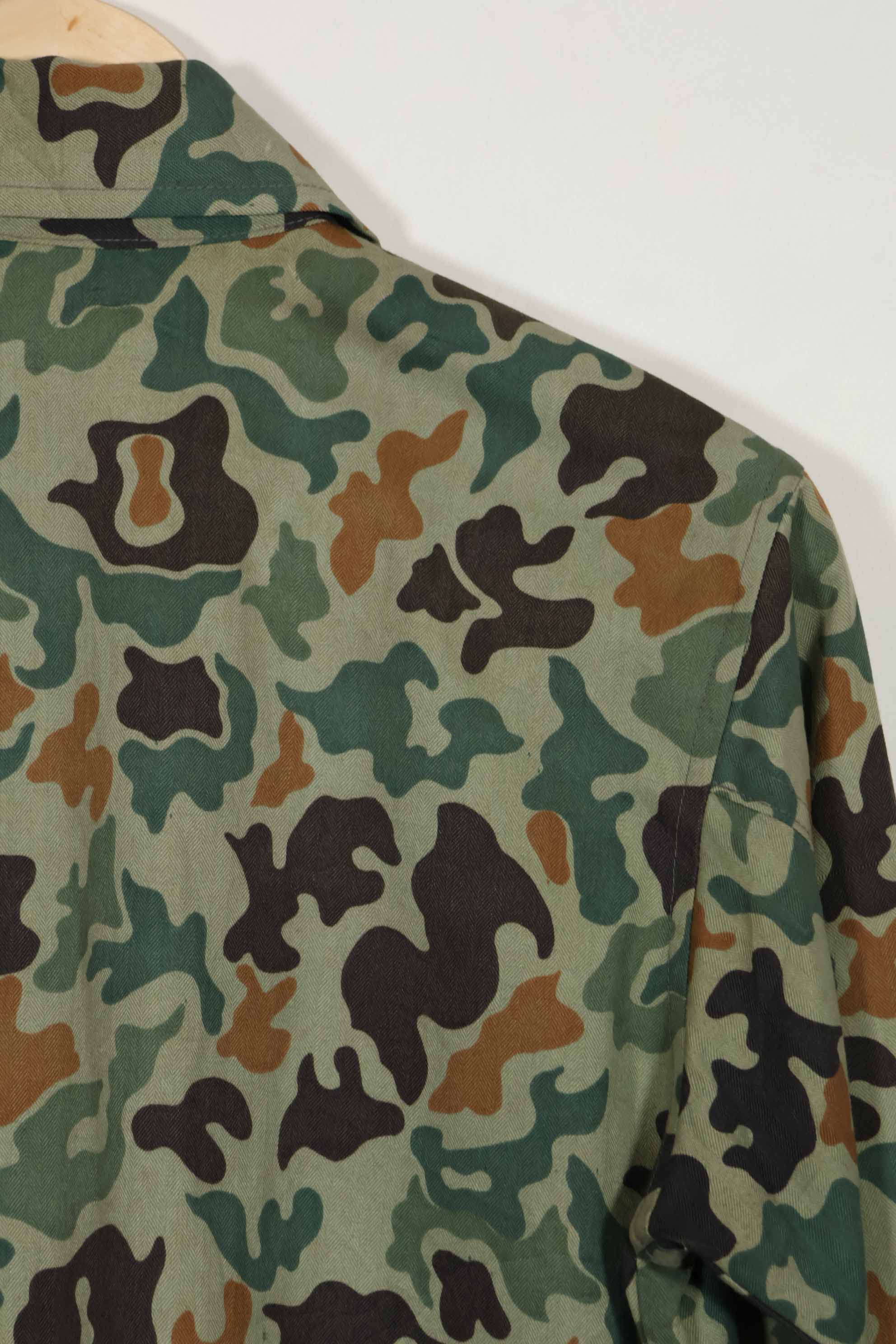 This is a Korean Army frogskin camouflage shirt from the 1980s, made of HBT fabric, and is nearly unused. It is in good condition with some wrinkles and stains from storage. The size is relatively large. There are marks where rank insignia has been removed. Although the goods are close to unused goods, we will be treated as used goods. Please note that returns are not possible.