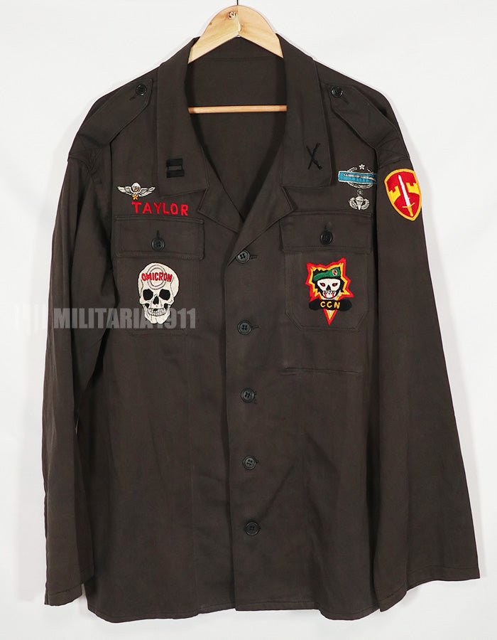 This is a replica of a type of black shirt called a 1-0 jacket worn by MACV SOG personnel who were active during the Vietnam War. The only thing sewn on is the MACV patch. This shirt is very cool and can be worn as an everyday jacket as well as a reproduction. This is a used item and cannot be returned. Please understand.